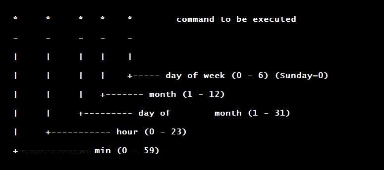 Each field is separated by a space, and together they determine the precise timing for the job execution.